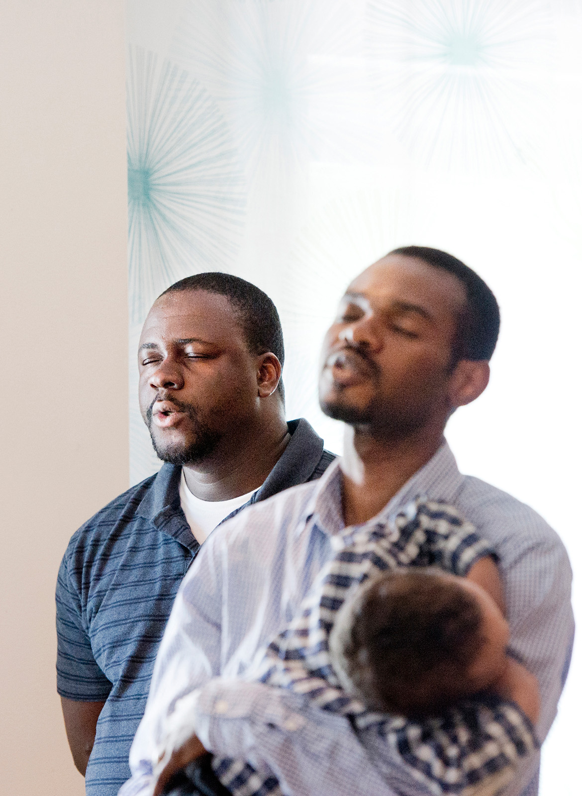 • Praying at the service of Redeemed Christian Church of God, originally from Nigeria. Members do missionary work in Europe.